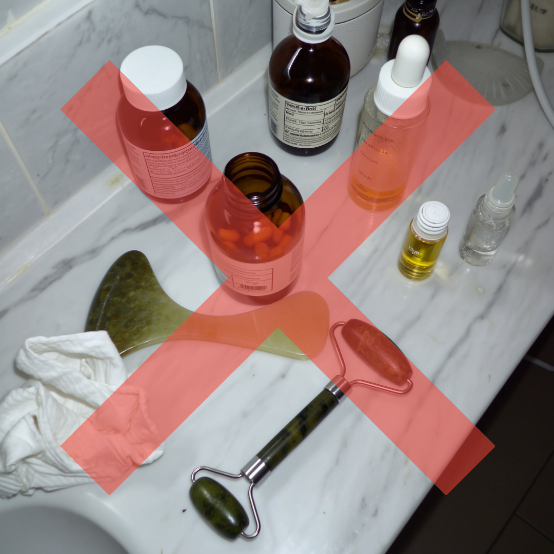 Gua sha works temporarily by manually moving fluid, but it doesn't address WHY fluid accumulates overnight. Our formula supports the root cause—your brain's waste clearance system during sleep. Many customers use both for even better results.